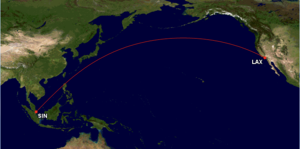 Eine Stunde kürzer als nach New York ist der Flug nach Los Angeles von Singapur. Auch hier hatte man in den 2000er Jahren damit begonnen, mit dem Airbus A340-500 hier wirtschaftliche non-stop Flüge zu fliegen. Auch hier konnte man erst durch den Airbus A350-900ULR eine Wirtschaftlichkeit erreichen.