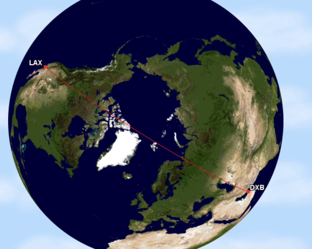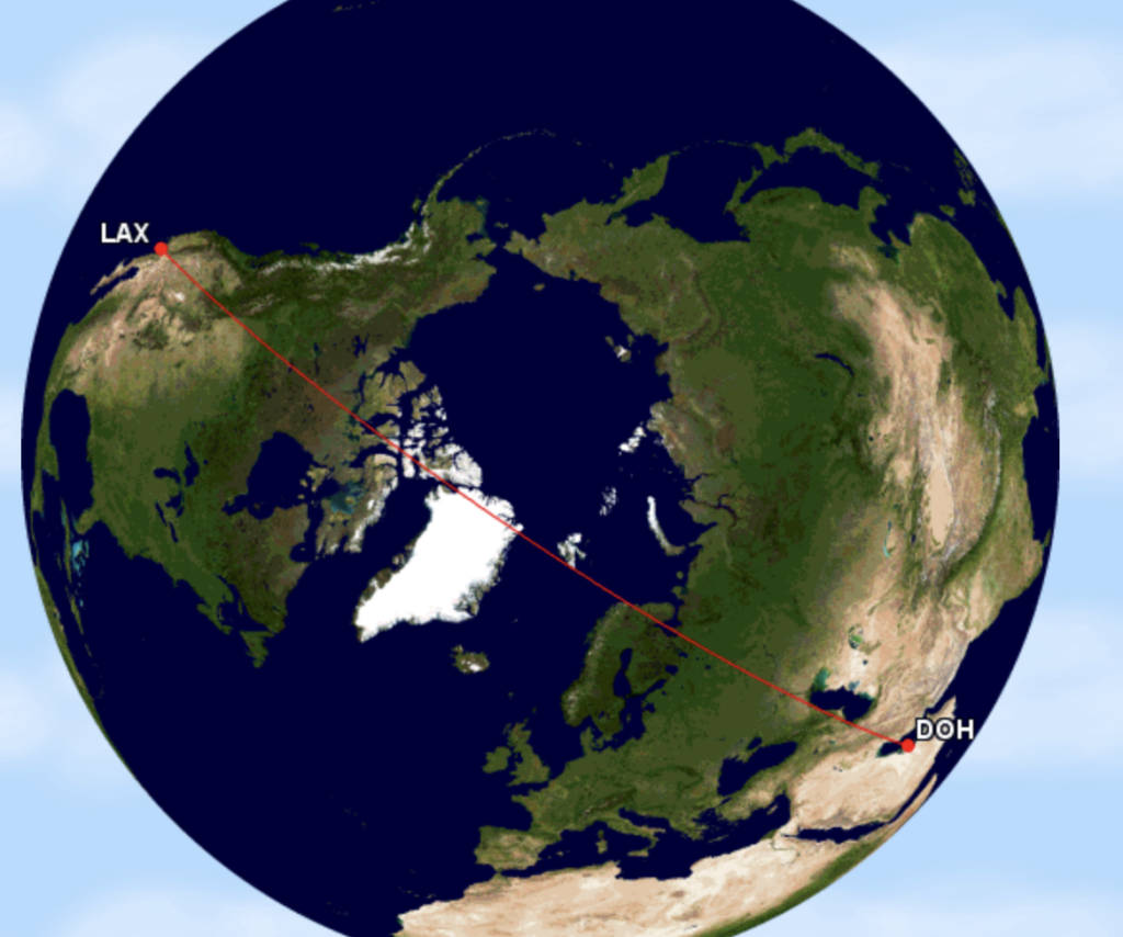Auch der Emirates Konkurrent Qatar Airways fliegt nach Los Angeles und der Flug ist nur etwas über 50 Kilometer kürzer, als der Flug aus Dubai. Der Airbus A350-1.000 braucht für die Strecke allerdings fünf Minuten länger, als der Airbus A380 aus Dubai, da dieser etwas schneller fliegt.