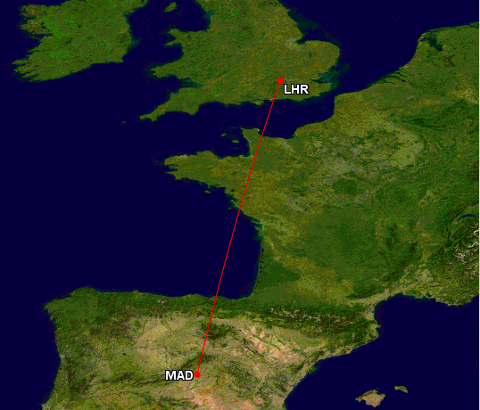 - BA 456 London 6:20AM nach Madrid 9:40AM