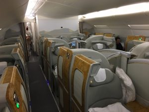 Vor etwas über einem Jahr hat Emirates dann auf einigen neuen Boeing 777-300er mit der neuen First Class, die die Airline ganz bescheiden als „The Game Changer“ bezeichnet, eine neue First Class vorgestellt, welche nicht nur wesentlich moderner wirkt, sondern auch bis zur Decke verschließbare, deutlich größere Suiten bietet.