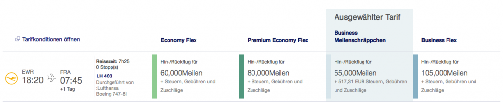 New York (JFK und EWR) in der Lufthansa Business Class für 55.000 Meilen
