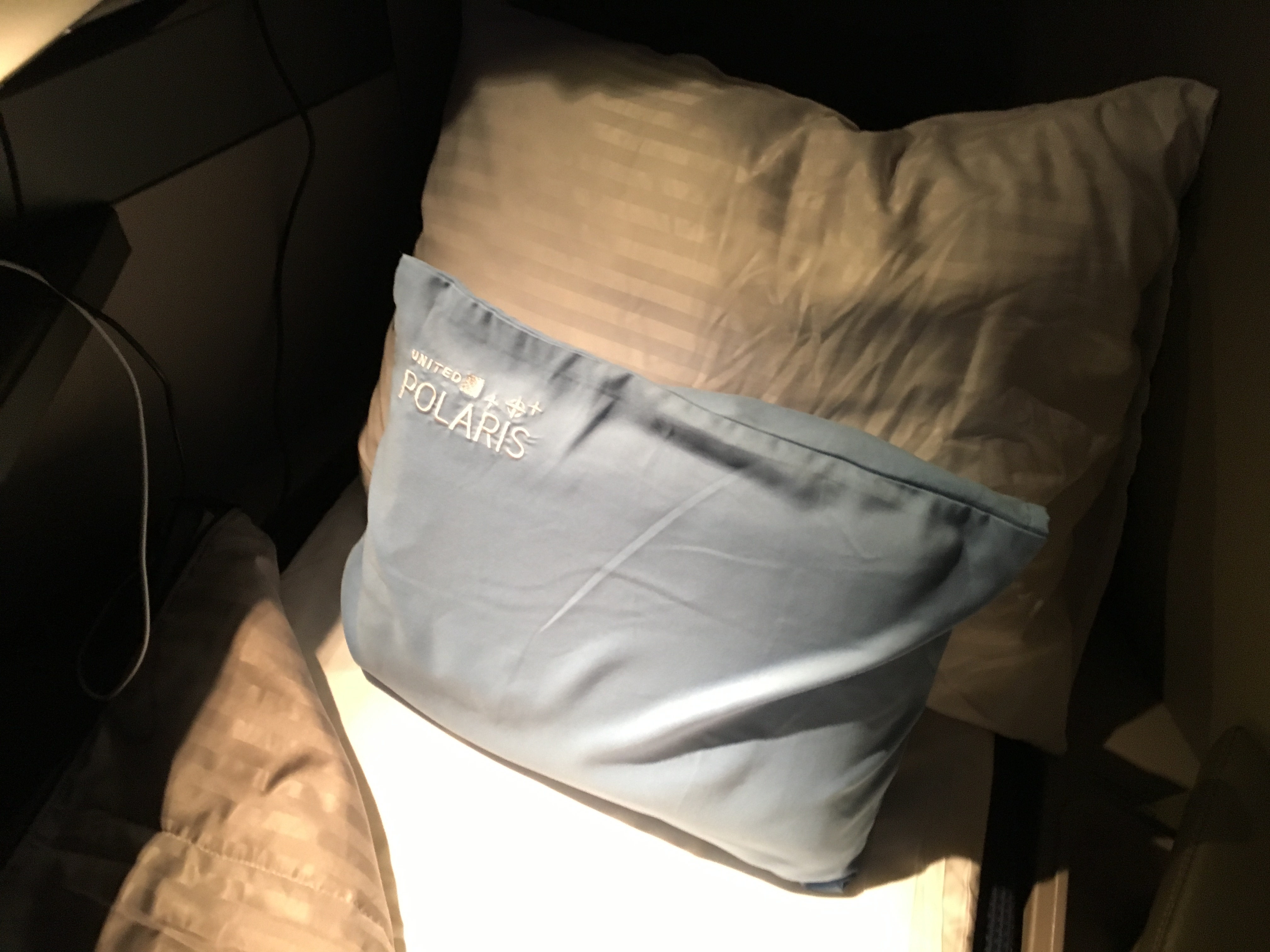 United hat in der Polaris Business Class Kabine mit das beste Bettzeug in der Business Class. Während inzwischen jeder Passagier zu seinem dicken Kissen und der großen Decke auch noch das blaue, Gel- Kissen, welches kühlend sein soll, direkt auf dem Sitz findet, gibt es auch noch Matratzen für die Business Class Sitze.