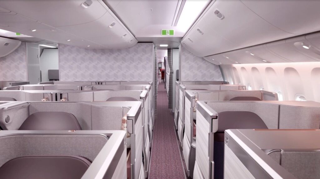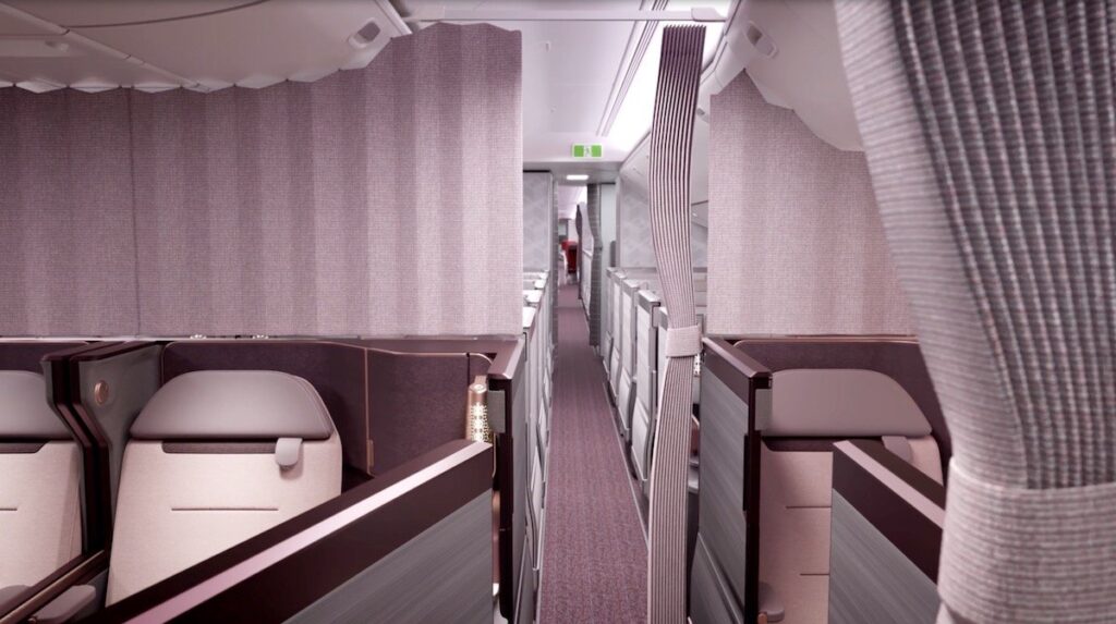 Air India setzt hier auf den Safran Unity Business Class Sitz, welcher auch bei Qantas im Airbus A350-1000 zum Einsatz kommen wird, der dann auf den 20+ Stunden Flügen zwischen London und Sydney Passagiere beherbergt. Entsprechend großzügig ist dieser neue Air India Business Class Sitz auch einzuordnen, wobei Air India gerade mit den Flügen aus Indien in die USA auch einige Ultra Langstrecken fliegen wird.