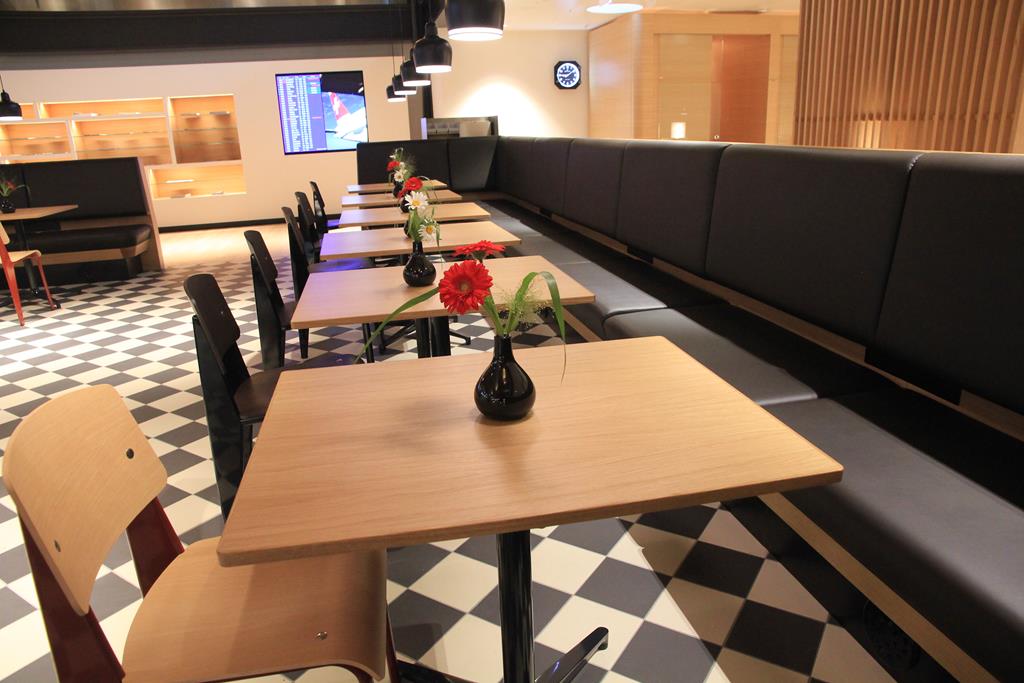 Der Bistrobereich ist vom Design her identisch mit dem der Business Class Lounge. Die Auswahl an Speisen und Getränken unterscheidet sich leicht. Die Auswahl ist etwas vielfältiger.