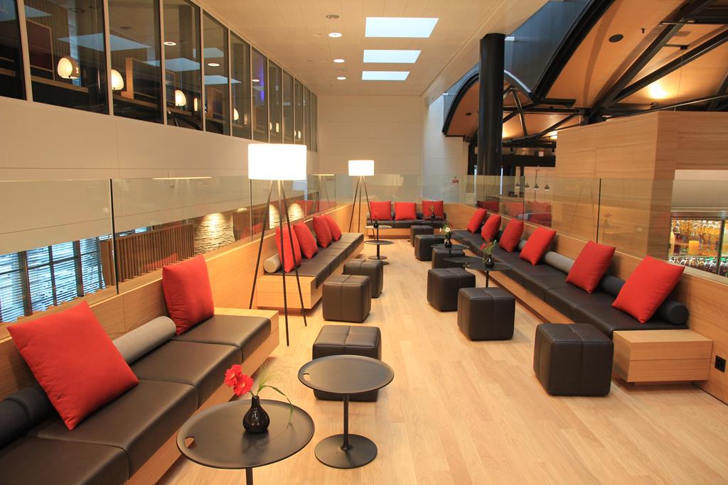Die Business Class Lounge ist mit 560 Quadratmetern für 160+ Gäste gestaltet.
