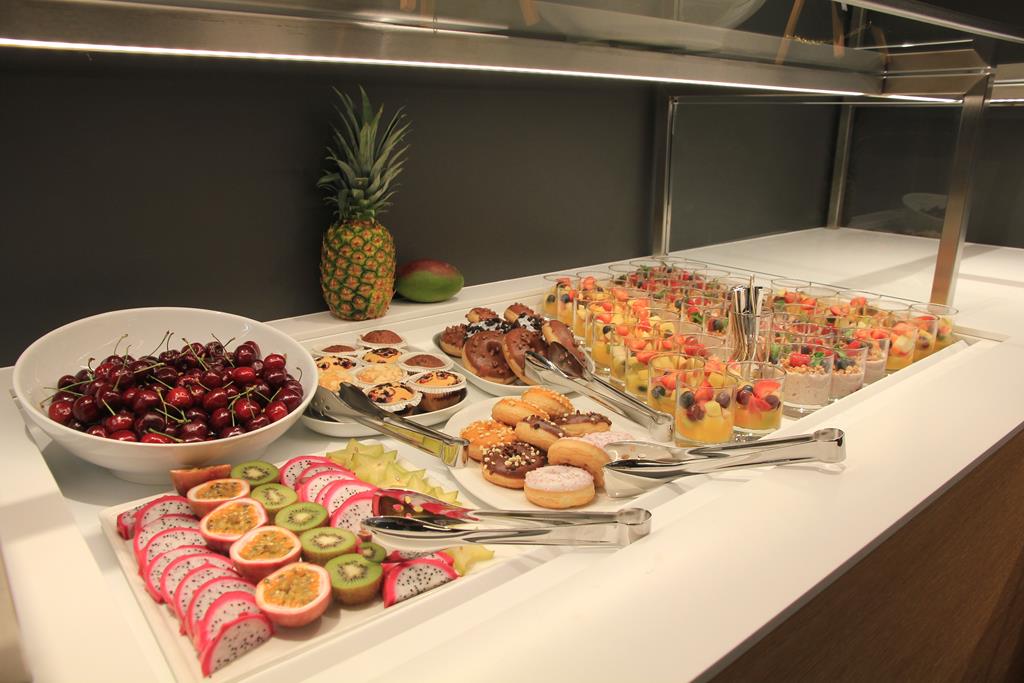 Der Bistrobereich ist vom Design her identisch mit dem der Business Class Lounge. Die Auswahl an Speisen und Getränken unterscheidet sich leicht. Die Auswahl ist etwas vielfältiger.