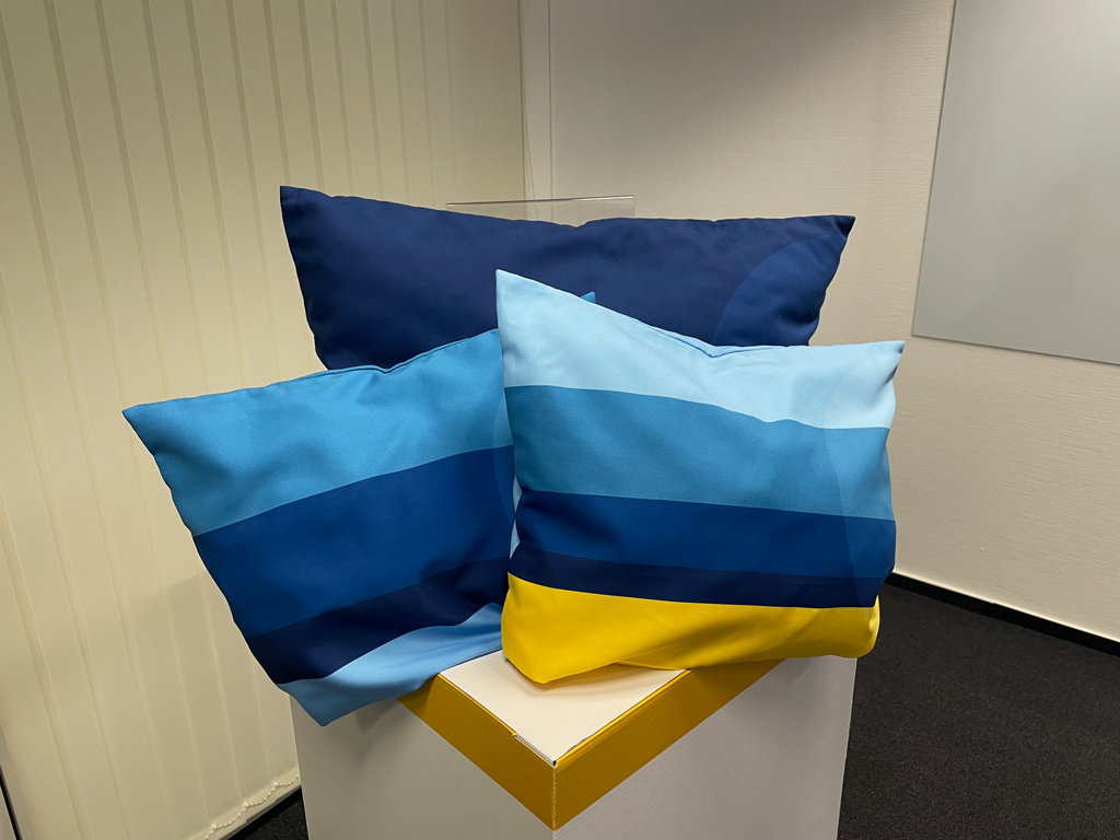 Dieses wiederholt sich auch bei den Kissen. In der Economy Class haben die Kissen einen hellblauen und gelben Streifen und wirken dadurch farbenfroh und verspielt. Je weiter man in den Reiseklassen nach vorne schreitet, desto unaufgeregter wird das Design der Kissen. In er Premium Economy Class gibt es dann ein Kissen in mittleren Blautönen und in der Business Class schließlich (ein größeres und besser gepolstertes Kissen) in dunklen Blautönen.