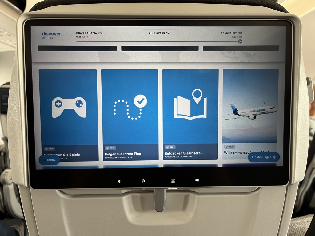Das Unterhaltungsprogramm an Bord hat für den Ferienflieger Discover Airlines einen hohen Stellenwert. Immer wieder berichtet die noch sehr junge Fluggesellschaft darüber, wie sie ihren Fluggästen den Weg zum Urlaubsziel angenehmer gestalten möchte. Dazu gehört auf der Langstrecke seit jeher ein persönliches Inflight-Entertainment-System in allen Sitzen. Selbst in einem Airbus A320 für die kürzeren Strecken, hat Discover testweise eigene Bildschirme eingebaut.