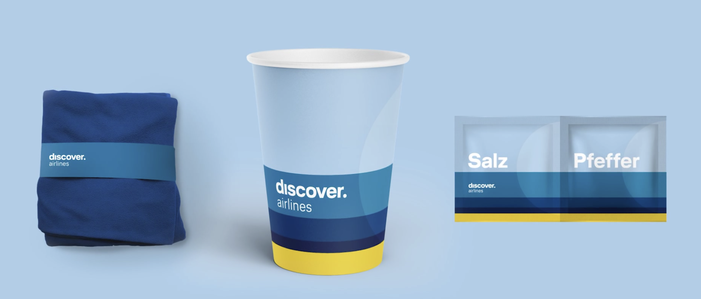 Sticker, Schilder, Logos, Kissenbezüge, Kopfschoner, Bordkarten, Accessoires, Becher und selbst die kleinen Salz- und Pfeffertütchen sollen bald die neuen Farben tragen und sich deutlicher von Eurowings und dem bisherigen Image abgrenzen.