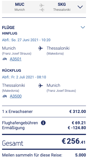 Aegean bietet häufig günstige Tarife, teilweise sind auch Flüge in der Business Class fair bepreist. Insbesondere Direktflüge, die nicht in die Hauptstadt Athen führen, liegen manchmal unter 200€/oneway. Neben Thessaloniki gibt es besonders im Sommer andere Ziele wie z.B. auf Kreta, die direkt angeflogen werden.
