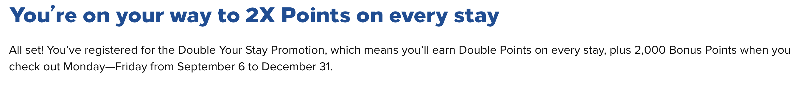 Die Bestätigung erfolgt zügig, ab dem 6. September gibt’s dann doppelte Punkte und eine Extragutschrift beim Check-out unter der Woche.