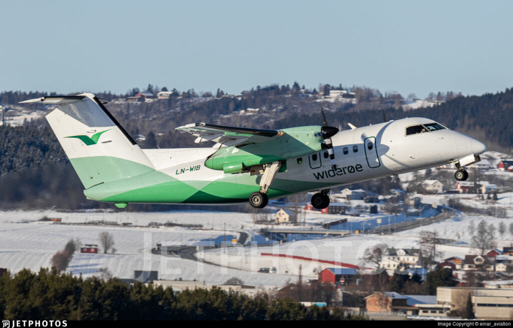Bei der LN-WIB handelt es sich um einen Turboprop des Typs Havilland Dash 8-100 welcher in 28 Dienstjahren an die 110.000 Flugzyklen absolviert hat. Um auf diese Summe zu kommen musste die Propellermaschine im Laufe der Jahre mindestens 10 Strecken pro Tag fliegen!