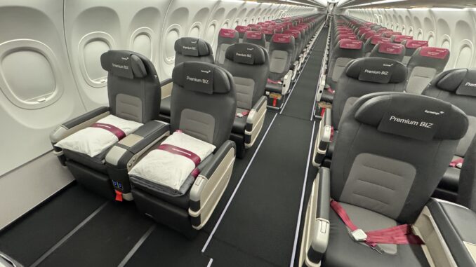 Lufthansa spielt ganz offensichtlich schon seit Jahren immer wieder mit der Idee eine „echte“ Business Class für Mittelstrecken einzuführen. Im letzten Jahr hat man hier etwas experimentiert und in der Lufthansa Gruppe gibt es mit Eurowings ein Experiment für „echte Business Class Sitze“ auf der Strecke nach Dubai und auch ITA Airways fliegt mit Airbus A321neo und sogar einer Lie Flat Business Class, vorrangig in den Nahen Osten.