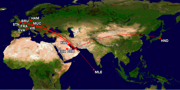 - EK659: Malé 11:00 – Dubai 14:00