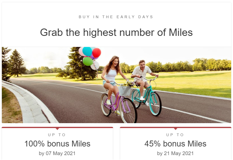 Wichtig beim aktuellen Meilen-Verkauf von Emirates ist einfach nur schnell sein. Denn doppelte Punkte kassiert ihr nur noch bis zum 7. Mai 2021. Danach müsstet Ihr Euch mit 45% Bonus begnügen.