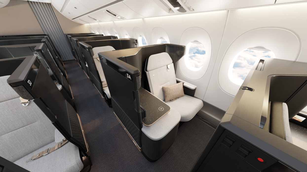 Die anderen Klassen erhalten keine komplett neuen Sitze mehr, aber ein Refresh, bei dem das Design angepasst und modernisiert wird. Besonders in der Business Class sieht man hier deutliche optische Unterschiede, aber der Sitz wird, wie auch in der First Class, noch der selbe bleiben.