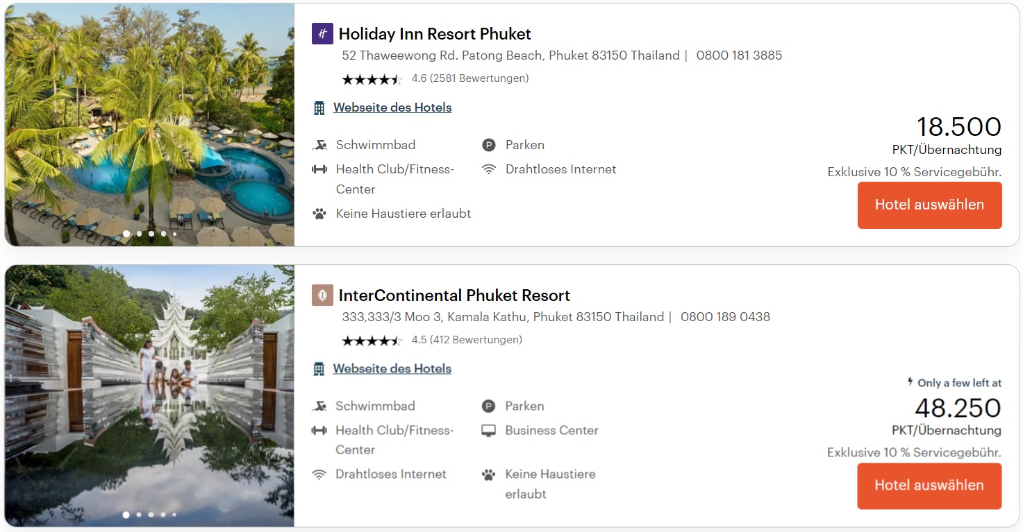 Vorteil von Punktebuchungen ist übrigens die Flexibilität mit einer flexiblen Storno-Regelung. Außerdem entfallen die sonst in vielen Märkten üblichen Steuern und Gebühren.