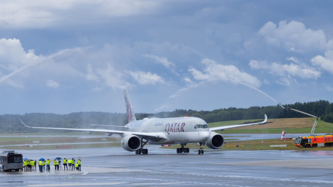 Als der Airbus A350 mit der Registrierung A7-AMH am Montag, den 1. Juli 2024, in Hamburg (HAM) landete, rückte die Feuerwehr aus. Der Grund war jedoch kein Notfall, sondern der Inaugural Flight (Erstflug) von Qatar Airways nach Hamburg. Lange hatten die Hamburger auf diese Verbindung gewartet, und so war die standesgemäße Wasserfontäne der Flughafenfeuerwehr obligatorisch.