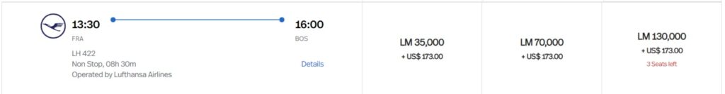 Wenn ihr euch allerdings Meilen auf Vorrat gekauft habt, könntet ihr jetzt eine böse Überraschung erleben. Denn Avianca Lifemiles hat den Preis für einige Flüge in Premium-Kabinen um bis zu 50 % verteuert. Besonders hart traf es dabei die beliebte Strecke zwischen Europa und Nordamerika. Dort werden nun 130.000 Meilen in der First Class für einen Oneway-Flug fällig. Bisher berechnete Avianca für einen Lufthansa First Class Flug von Frankfurt in die USA nur 87.000 Meilen.