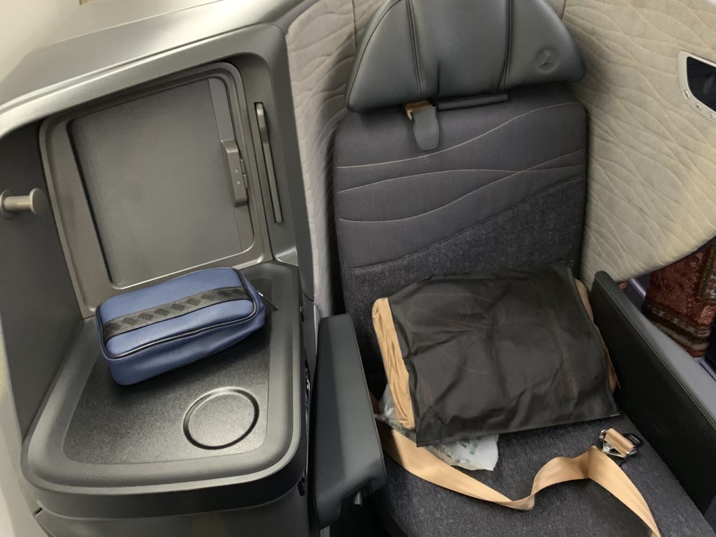 Zu ihrem Glück wurde der Service kurz vor Abflug wieder erhöht, sodass es auch wieder ein Kissen gab und das Essen auch wieder näher am Vor-Pandemie-Standard war. Zusätzlich durfte sie wieder zweimal 8 KG Handgepäck mit in die Kabine nehmen, was ein Monat zuvor noch nicht der Fall gewesen ist. Der in der Business Class bekannte Welcome Drink war jedoch noch nicht vorhanden.