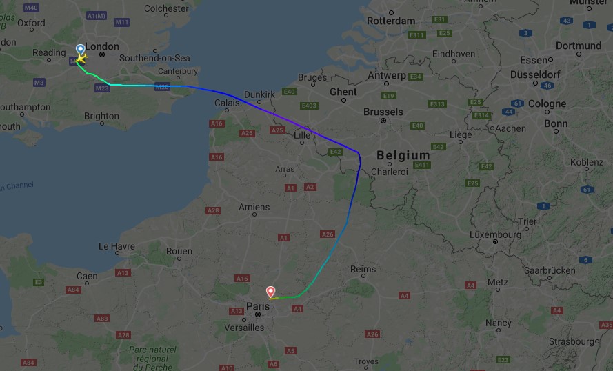 Auf Flightradar24.com lässt sich gut verfolgen, wie der Airbus A220 mit der Registrierung HB-JCC, den Swiss immer noch unter der alten Bezeichnung Bombardier CS300 führt,  zunächst auf eine Flughöhe von 34.000 Fuß steigt. Über Belgien dreht die Maschine dann noch vor Brüssel-Charleroi in Richtung Paris ab und leitet dabei den Sinkflug ein.