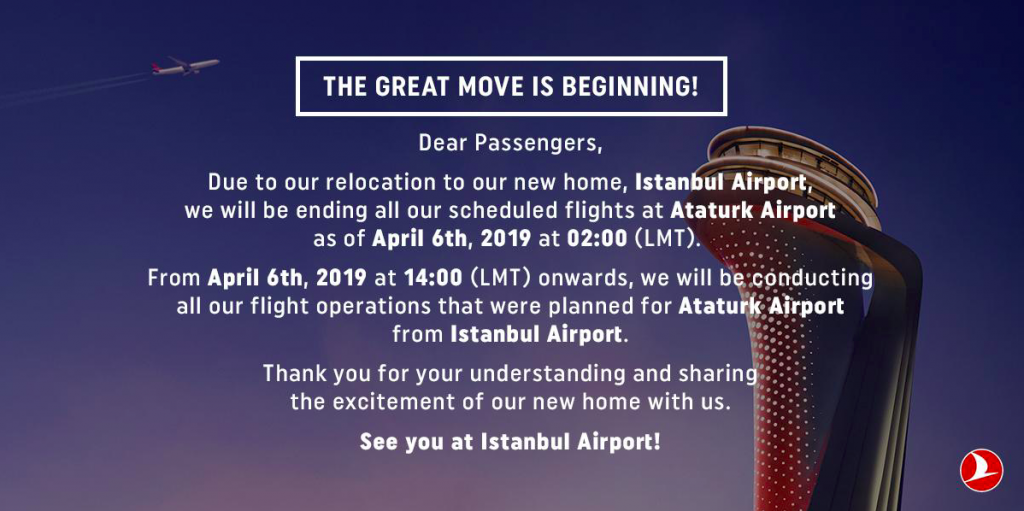 Nach der ein oder anderen kleinen Verspätung, wird nun in der Nacht vom 6. April zwischen 2 Uhr nachts, bis 14 Uhr am Mittag des 6. Aprils auch Turkish Airlines mit ihrer gesamten Flotte vom jetzigen Ataturk Airport zum neuen Istanbul Airport umziehen.