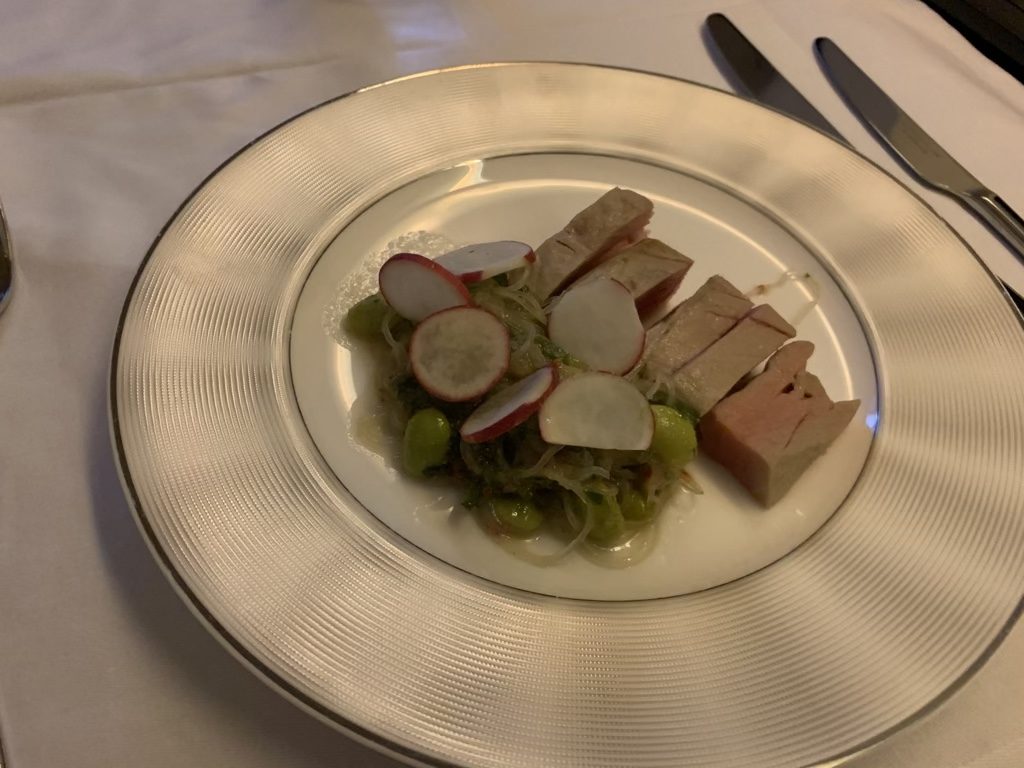 Bei Etihad kann man in der First Class aus einer Speisekarte frei wählen und ein Koch bereitet das Essen wann immer man möchte zu. Wirklich Begeisterung kam bei mir leider nicht auf, so hat mir die Vorspeise z.B. nicht geschmeckt, da sie ziemlich geschmacksneutral war. Der Koch hat mir daher direkt noch das arabische Mezze angeboten, was kein Vergleich zu dem war, das Emirates in der First Class auch ab Asien serviert.