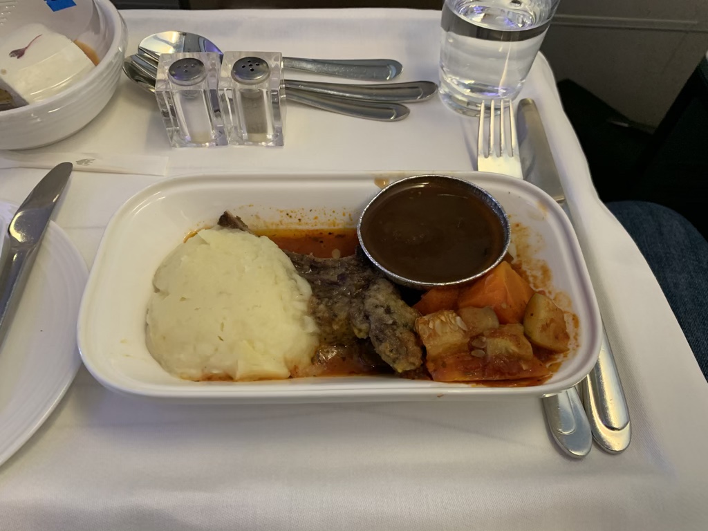 Auch das Essen auf beiden Flügen fand ich absolut in Ordnung, auch wenn es wohl nicht das große Highlight war. Allerdings fand ich meine Mahlzeit auf Kurzstrecken bei Singapore Airlines bis jetzt auch nicht wesentlich umfangreicher oder besser. Was den Service hier wieder unterstreicht ist, dass man nach einem Blick auf das doch recht kleine Stück Lamm beim Servieren des Hauptganges mit den Worten „that looks very small“ direkt noch einen zweiten Hauptgang angeboten hat.