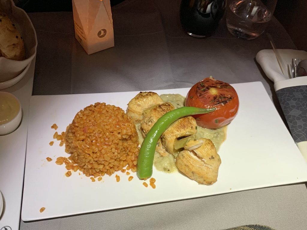 Theoretisch bietet Turkish Airlines auf den späten Nachtflügen ein Dine on Demand Dinner an, allerdings war der Koch bei der Aufnahme meiner Bestellung und der Aussage dass ich in der Mitte des Fluges essen wolle so nervös und suchte nach Gründen, warum ein Dinner Service direkt nach dem Start besser ist, dass ich zugestimmt habe und dem wirklich hart arbeitenden Mann das Leben auf dem neuen Flugzeug nicht noch anstrengender machen wollte.