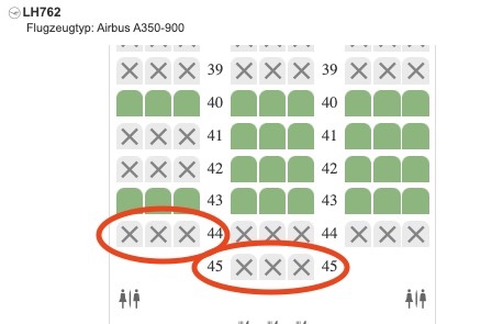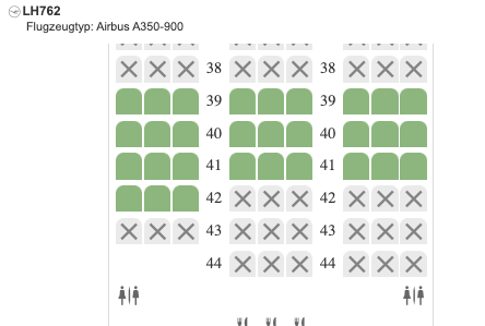 Ein Leser berichtete uns von anstehenden Anpassungen, auch Lufthansa bestätigte uns, daß sich ein Airbus A350 bereits in der Umrüstung befindet. So soll die Maschine eine neue Toiletten-Konfiguration erhalten, weitere Details wurden allerdings nicht genannt. Die Reduzierung von 10 auf 9 Waschräume könnte neuen Raum für weitere Sitze schaffen, diesbezüglich ist uns ein Detail auf der Buchungsmaske aufgefallen:
