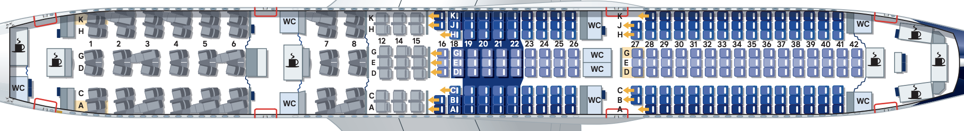 Doch wieso haben beide Varianten trotz der unterschiedlich hohen Business Class Kapazität insgesamt fast gleich viele Plätze?
