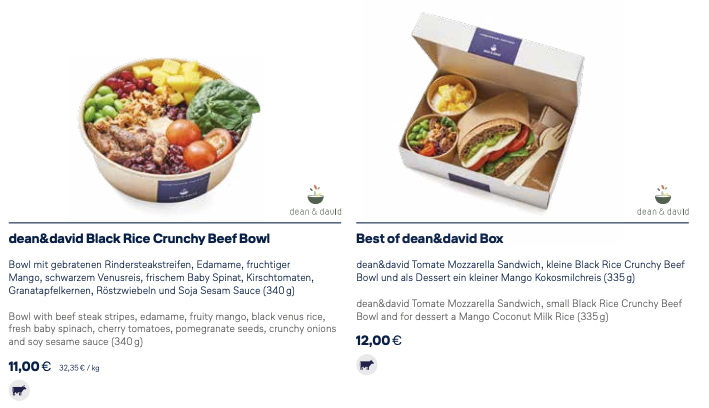 Für den größeren Appetit wird wieder ein Salat bzw. eine Bowl angeboten, darunter einmal vegan und einmal mit Rind. Leider gibt es diese beiden Mahlzeiten nicht als vergünstigtes Paket mit einem Getränk. Bei den beiden Artikeln gibt es eine Preissteigerung von 0,70€ bzw. 1€, die Box mit einem Mix der Produkte bleibt preislich gleich.