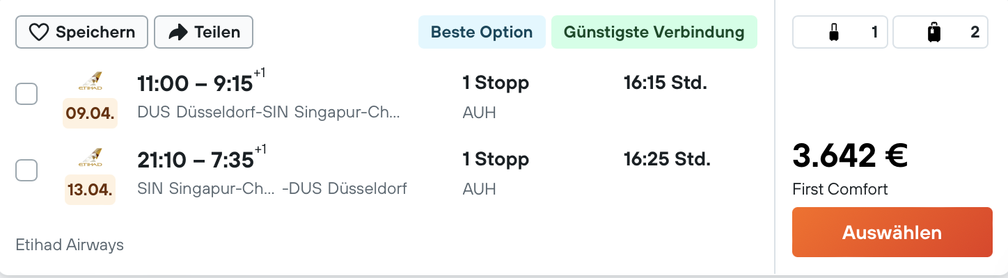 Etihad Airbus A380 First Class nach Singapur ab Deutschland für 3.642 Euro | Frankfurtflyer Kommentar