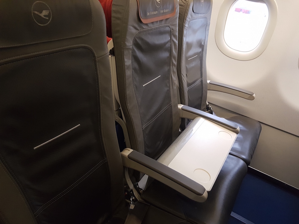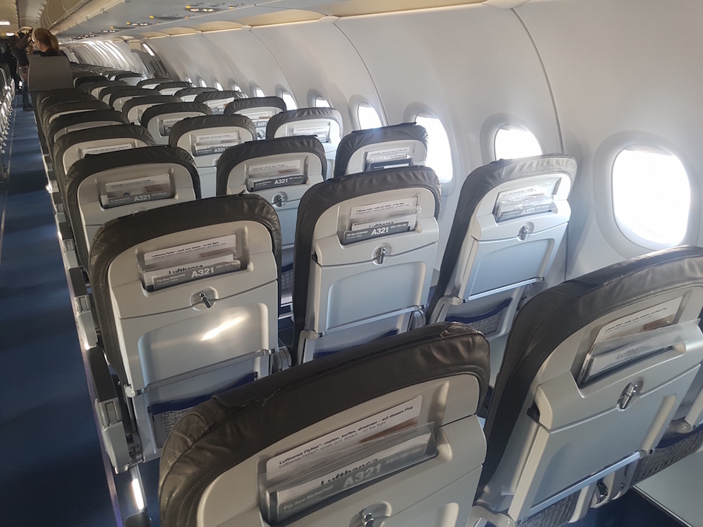 Lufthansa hat bis zu 205 Sitze in dem Flugzeug verbaut, wobei in den ersten drei Reihen jeweils die Mittelsitze mit einem Tisch blockiert sind, sodass man sie nicht belegen kann. Hierdurch haben die Flugzeuge offiziell nur 200 Sitzplätze und können mit vier Flugbegleitern betrieben werden.