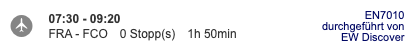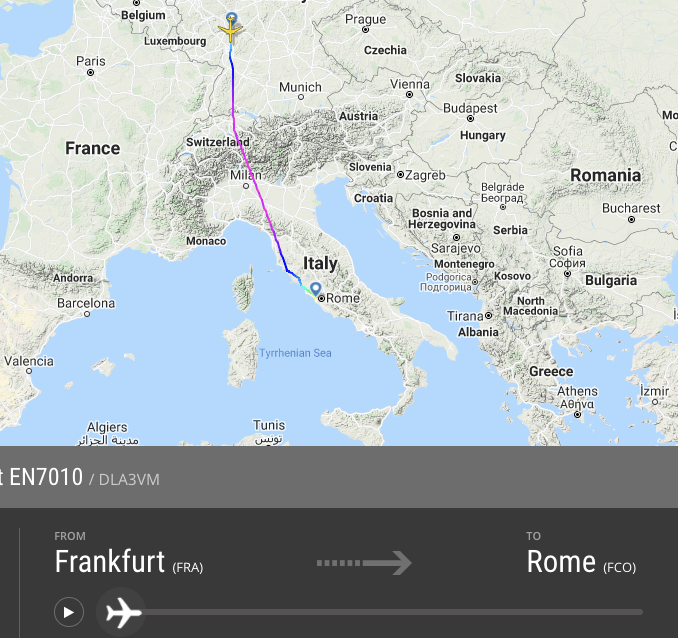Nach 1:30 Stunden erfolgte die Landung in Rom überpünktlich, nur 50 Minuten später führte die D-AXGE dann den Rückflug durch. Gegen Mittag startete der zweite Flieger unter der Flugnummer EN7020 nach Barcelona. Eingesetzt wurde ein anderer Jet mit der Registrierung D-AXGF.