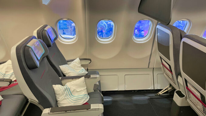 „Wenn Flüge ausgelastet sind, wieso können dann Plätze priviligiert [sic] vergeben werden?“ Wenn die Flüge nicht voll wären, würde man die Sitze einfach freilassen. Nur wer zahlt, darf auf einem solchen Sitz sitzen. Jetzt ist die Eco normal überbucht, aber die More Legroom’s sind frei. Da werden nun Passagiere geupgradet – und zwar beim Vorabend-Check-In.