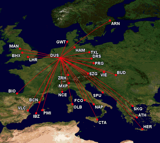 Für den Übergangsflugplan zwischen dem 1. Juni und 14. Juni plant Eurowings insgesamt 28 Ziele ab Düsseldorf anzufliegen.