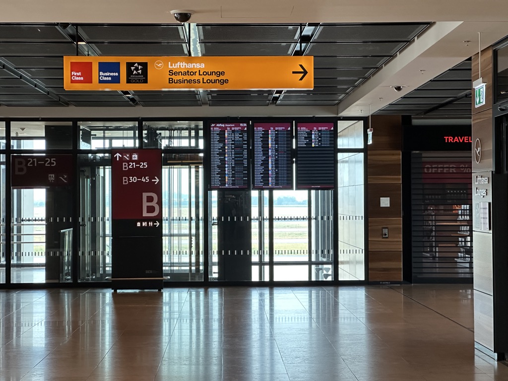 Lufthansa betreibt am Flughafen Berlin Brandenburg eine Business und Senator Lounge im Terminal 1. Diese liegt an den B-Gates. Fluggäste die von dort mit Lufthansa oder einem Star Alliance Partner abfliegen, haben es in der Regel nicht so weit. Manchmal werden die Maschinen bei A1 oder A2 abgefertigt, was noch eine akzeptable Entfernung sein mag.