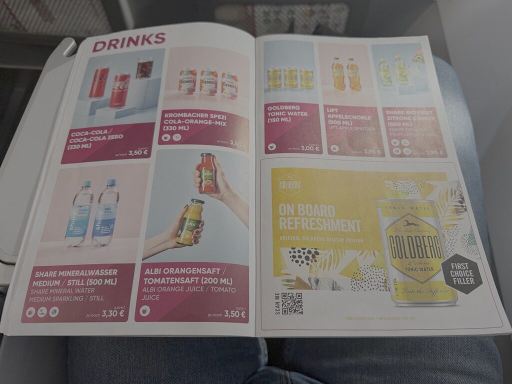 „Getränke wurden mehrfach angeboten. Man konnte aber jederzeit in der Bordküche nach Getränken fragen und bekam diese unkompliziert in die Hand gedrückt.“