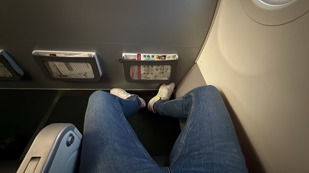 Die BizClass sitze bieten etwas mehr Beinfreiheit und einen garantiert freien Mittelsitz. Ich saß auf 1 F, ein gemütliches ruhiges Eck. Allerdings muss man beim Aufstehen dann über den Passagier auf 1 D klettern. Die Beinfreiheit war ausreichend.
