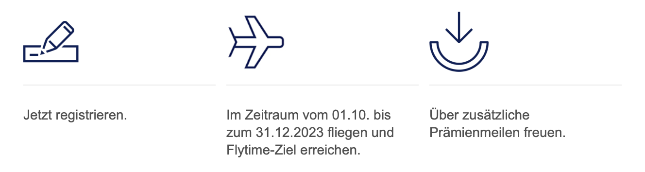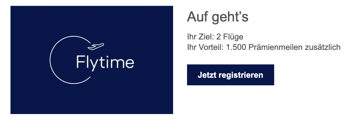 Es dauert nicht mehr lange und die Winter Flytime 2023 beginnt. Während der Flytime haben Sie die Möglichkeit, für Ihre Flüge bei den teilnehmenden Airline-Partnern zusätzliche Prämienmeilen zu sammeln. Heute erhalten Sie Ihr persönliches Flytime-Ziel. Registrieren Sie sich am besten gleich und reisen Sie im Zeitraum vom 01.10. bis zum 31.12.2023. Freuen Sie sich auf dieses ganz besondere Gefühl, das es nur über den Wolken gibt. Wir wünschen Ihnen angenehme Flüge und viel Freude beim Meilensammeln.Ihr Miles & More Team