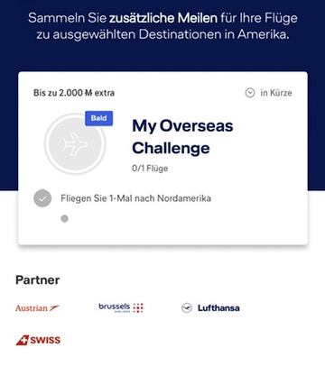 Aktivieren Sie Ihre My Overseas Challenge, erreichen Sie Ihr Flugziel vom 08.01.2024 bis zum 29.02.2024 und freuen Sie sich über extra Meilen.