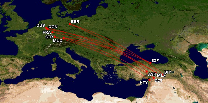 - Stuttgart (STR) – Hatay (HTY) | ab 21. Mai 2024 | jeweils dienstags