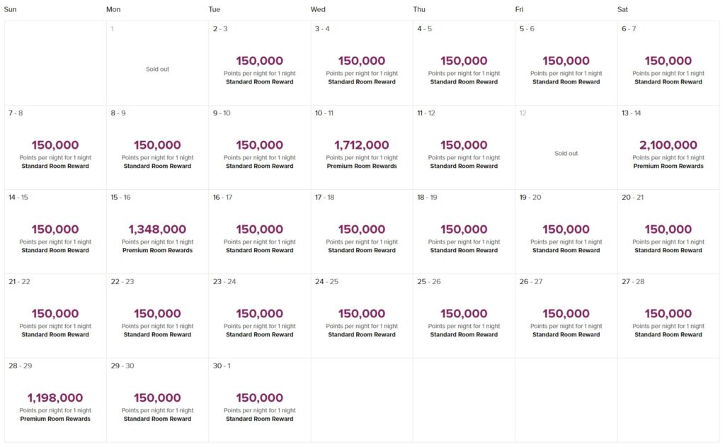 Fünf aufeinanderfolgende Standard-Zimmer Nächte findet ihr übrigens besonders leicht bei Hilton Honors über die Suche mit flexiblen Daten. So wie in diesem Beispiel mit dem Waldorf Astoria auf den Malediven, welches als Standardpreis schon 150.000 Punkte pro Nacht berechnet. Premium-Zimmer starten erst bei über einer Million Hilton Honors Points.