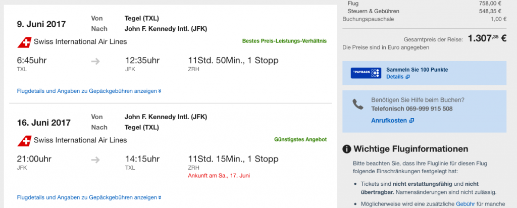 Dieser Flash Sale ab Berlin ist eine fantastische Möglichkeit um auch in den deutschen Sommerferien nach New York zu reisen. Preise von 1.270 Euro und mehr kann man auch in der Economy Class in den Sommerferien sehr schnell für Transatlantikflüge bezahlen, was dieses Angebot doppelt interessant macht.