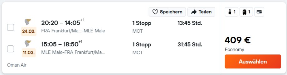 Flugdeal: Ab Frankfurt auf die Malediven für nur 410 Euro | Die Oman Air Economy Class