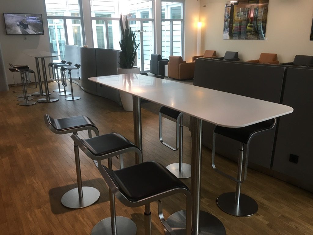 Zu den Services wird eine vielseitige Bewirtung mit frischen Snacks und einer reichlichen Auswahl an warmen und alkoholischen Getränken sowie Softdrinks beworben. Das Catering wird von Mövenpick/Marché übernommen. Zur Ausstattung gehören auch Arbeitsplätze mit Rückzugsmöglichkeit.