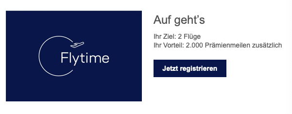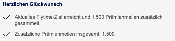 Sie haben Ihr aktuelles Flytime-Ziel erreicht und sich zusätzliche Prämienmeilen gesichert. Damit haben Sie sich für das nächste Level qualifiziert und erhalten heute Ihr neues Flytime-Ziel. Nutzen Sie die Chance auf noch mehr Prämienmeilen und registrieren Sie sich gleich für Ihr persönliches Next Level.