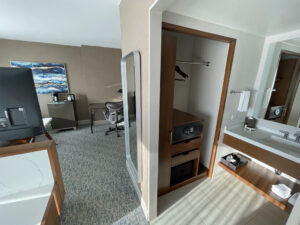 Das Hyatt Regency Washington Dulles ist ein großes Flughafenhotel. Es bietet seinen Gästen ein kostenloses Flughafenshuttle und im Hotel selbst dann namensgerechten Hyatt Regency Comfort. Neben dem Geschäft mit Hotelzimmern bietet das Hotel noch ein Konferenzzentrum, in denen mehrere Konferenzräume unterschiedlichster Größe angemietet werden können. Im Rahmen unseres 4-4-4 Flugs nach Washington nutzten wir es als Teamhotel.