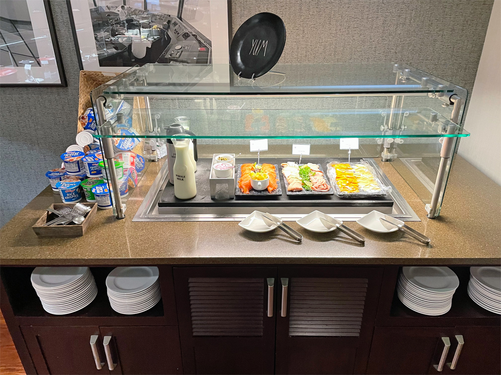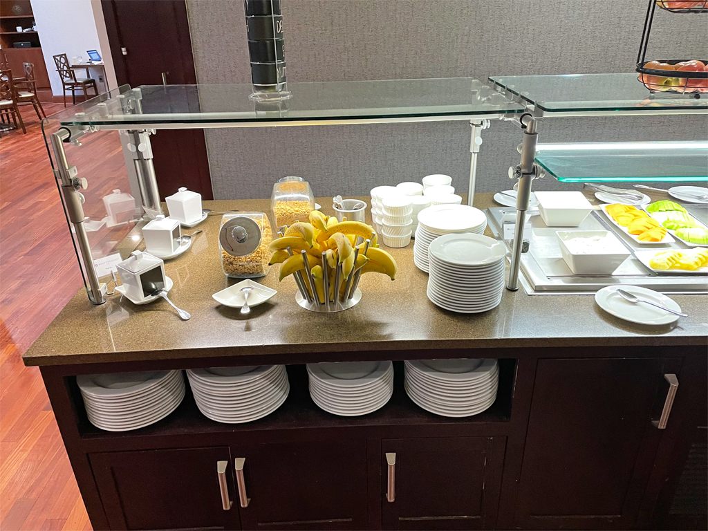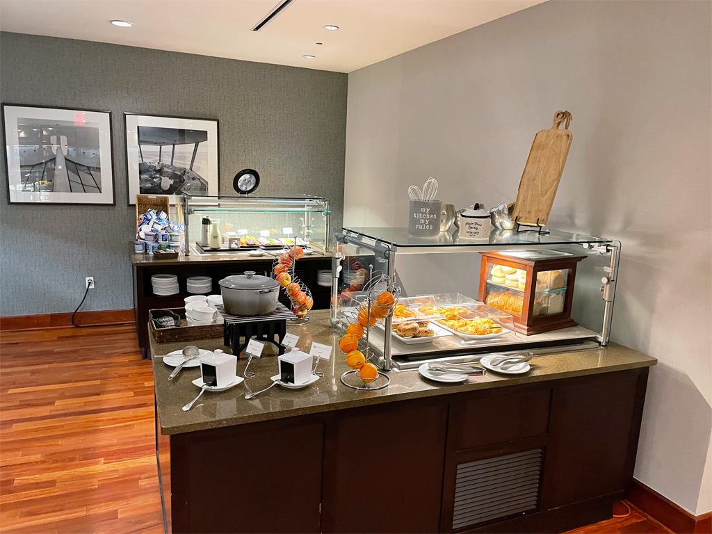 Das Frühstücksbuffet wird jeden Morgen im Restaurant aufgebaut. Dabei bietet das Hotel ein solides, abwechslungsreiches und leckeres Frühstück an. Als wir dort waren gab es mehrere warme Speisen (z.B. Speck, Rührei und Grits & Shrimp) zur Auswahl. Die Cooking Station war noch geschlossen. Ob es sich dabei um eine Anti-Corona oder permanente Sparmaßnahme handelt, kann nur das Management wissen.